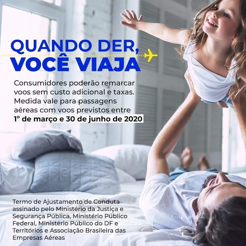 Os consumidores que compraram passagens aéreas entre os dias 1º de março e 30 de junho deste ano poderão remarcar as passagens aéreas sem custo adicional e sem multa.